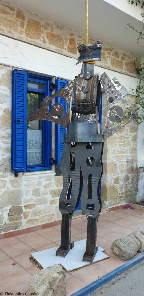 A l’entrée de la maison, vous pourrez admirer Le guerrier, synthèse de l’esprit crétois vaillant et de la fantaisie de l’artiste.