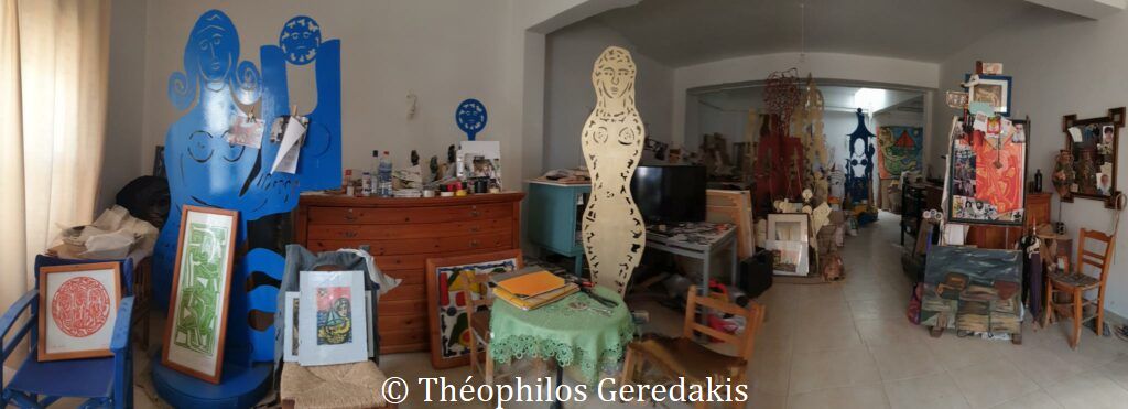 Son atelier est situé dans la maison familiale datant du 19ème siècle dont la terrasse est citée dans L’été grec de Jacques Lacarrière.
