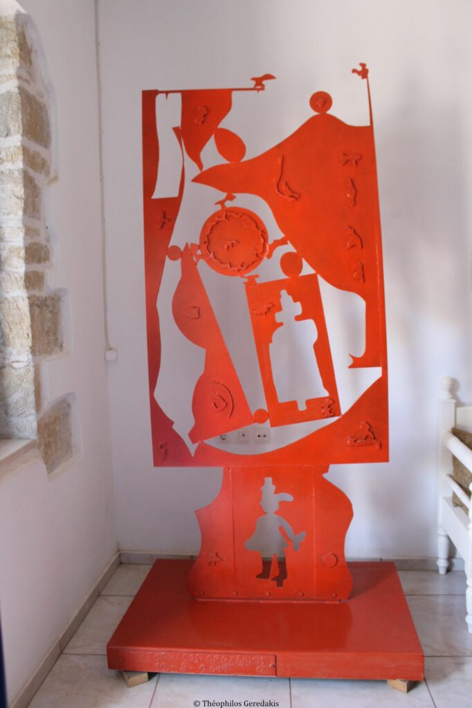 Superposant les récits mythologiques, Théophilos reprend dans plusieurs de ses sculptures le thème de l’enlèvement d’Europe et la figure du taureau, animal sacré central dans les jeux minoens. Se mêlent à ces thèmes traditionnels ceux propres aux récits populaires crétois: esprits, démons, personnages fantastiques.